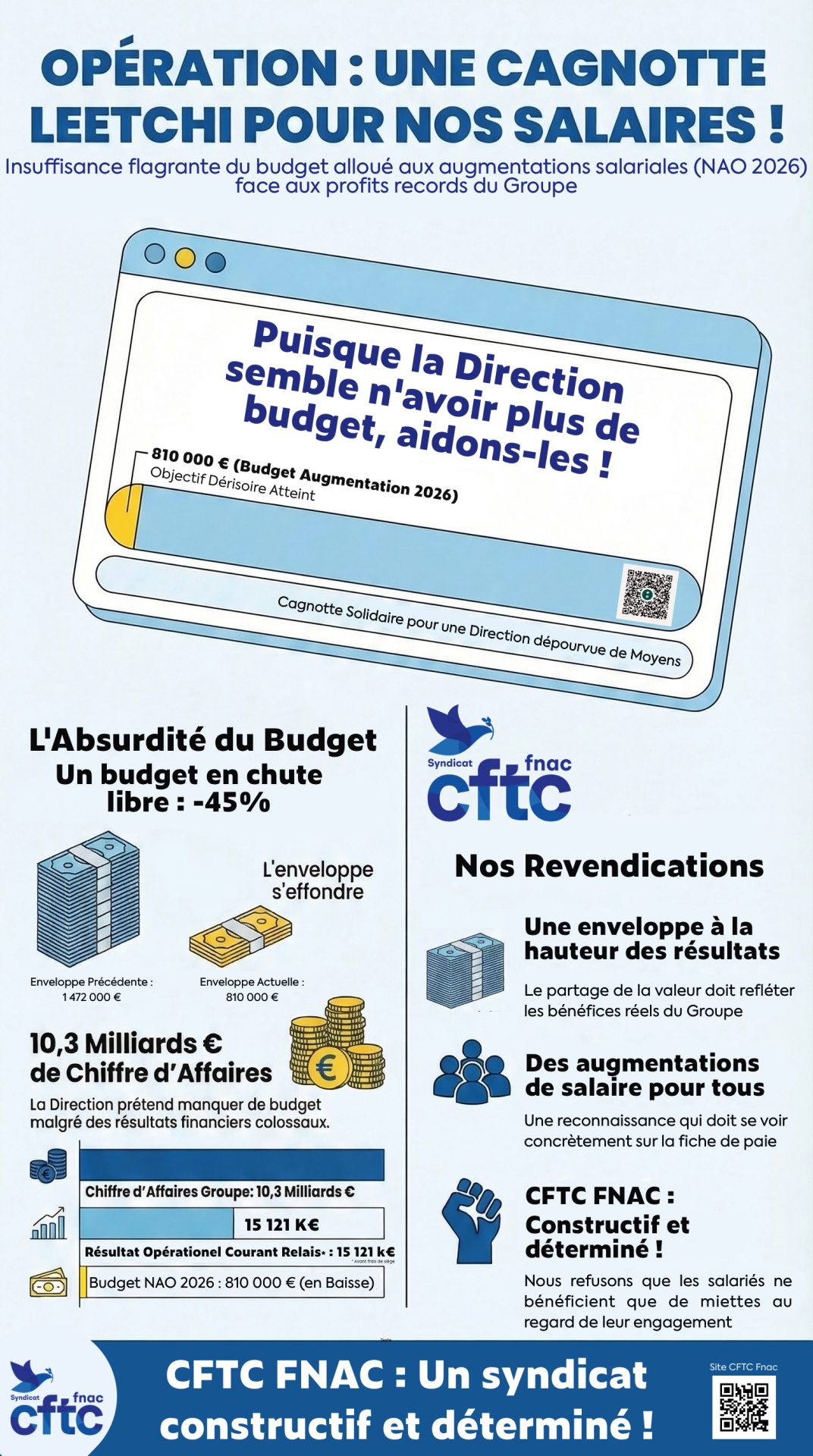 Une négociation est actuellement en cours au niveau du Groupe Fnac autour de l’accord ARTT / forfait annuel en jours, spécifiquement destiné aux cadres.Cet accord concerne l’ensemble des cadres travaillant dans les sociétés Fnac, quels que soient leur périmètre ou leur implantation : relais, Paris, Codirep, périphérie, logistique, MSS, SFL. Derrière un cadre juridique parfois … En savoir +