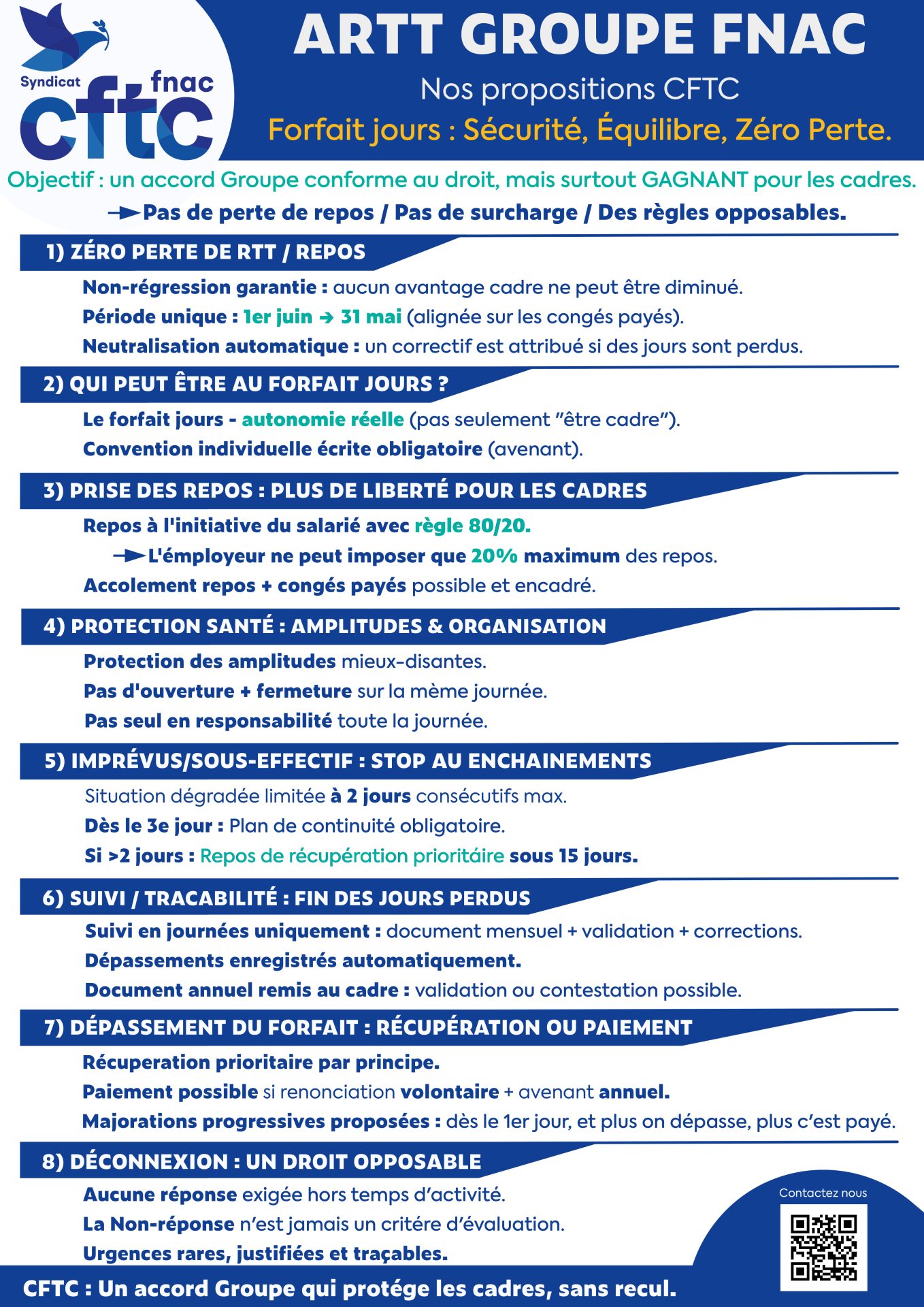 Si ce futur accord doit évidemment sécuriser juridiquement le dispositif pour l’entreprise, il doit surtout offrir de véritables garanties aux cadres. La CFTC porte des revendications claires et non négociables, parmi lesquelles :